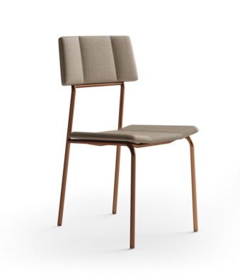 Cadeira Lou Tecido Linho Areia e Courino Caramelo 1742